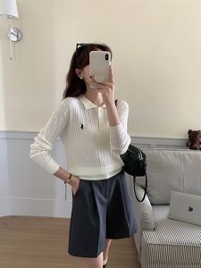 polo领小马女士麻花翻领长袖针织衫秋新款上衣刺绣绞花毛衫t恤潮