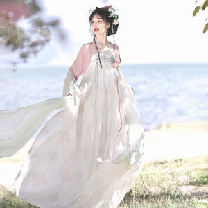 原创设计橙花尽唐制汉服女中国风汉元素披帛上襦齐胸裙套装9038