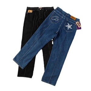 跨境Corteiz牛仔裤星星刺绣夹克嘻哈高街做旧恶魔岛牛仔裤潮牌ins