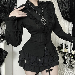 CF25205哥特暗黑风提花肌理感衬衫 2025新款修身百搭款长袖上衣女