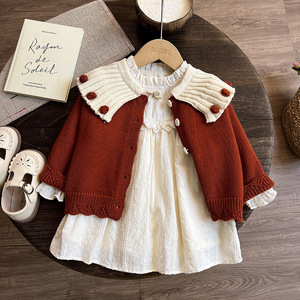 女童针织开衫春秋新年衣服圣诞儿童秋装上衣女宝宝毛衣外套秋冬款