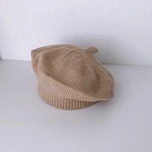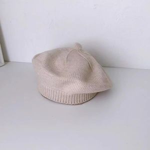 宝宝帽子春秋薄款纯色毛线针织帽婴儿贝雷帽可爱男女儿童画家帽