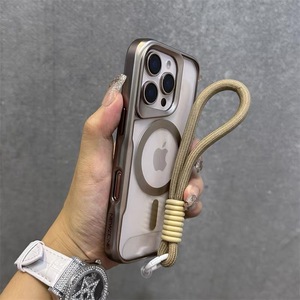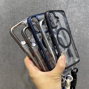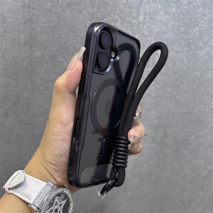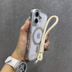 适用苹果16promax手机壳磁吸小蛮腰苹果15透明高级感带挂绳手绳新