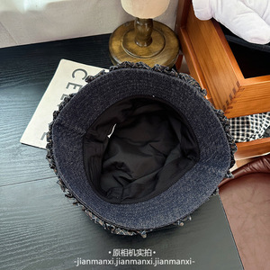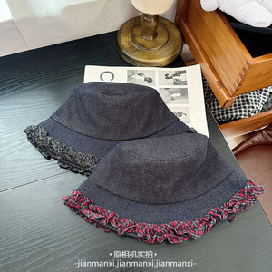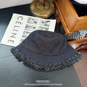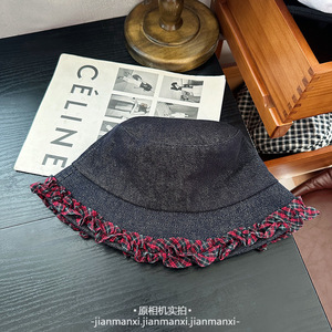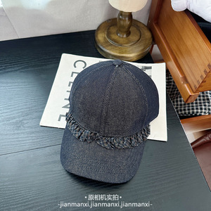 水洗深蓝牛仔棒球帽渔夫帽格纹木耳边装饰可爱显脸小韩版鸭舌帽