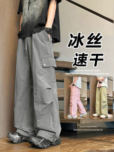 青少年薄款工装裤子男孩高中初中学生冰丝速干休闲裤大童直筒长裤