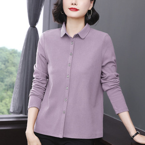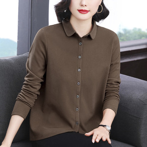 2025新款妈妈装绒衫单排扣女士休闲时尚洋气外穿翻领上衣宽松长袖