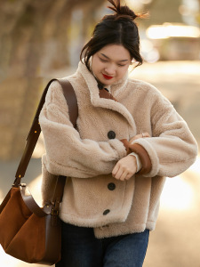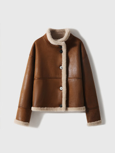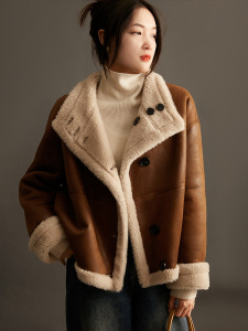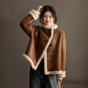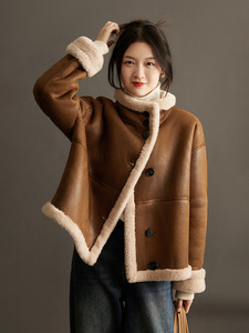 100%羊毛冬新款双面两穿小个子机车风羊剪绒皮草外套女厂家批发