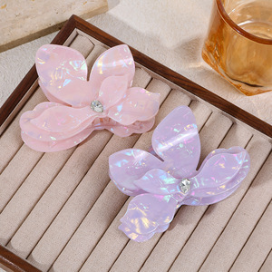 新款立体三角梅发夹醋酸质感镶钻气质抓夹女盘发夹高级感鲨鱼夹
