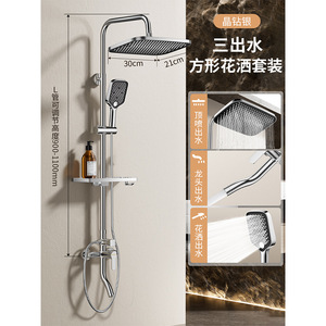 【经典款】加厚增压*银色方形三档◆8寸顶喷