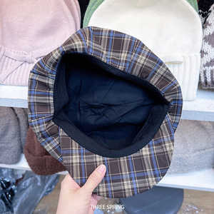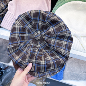 批发韩国2025年早秋新款大檐格纹大版八角帽女大头围显脸小报童帽