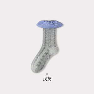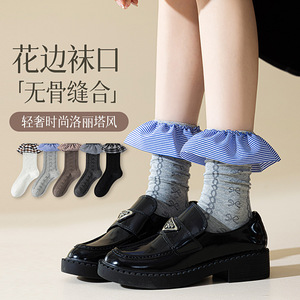 大花边女袜中筒无骨洛丽塔春秋日系学院风袜子女木耳花边配小皮鞋
