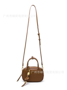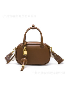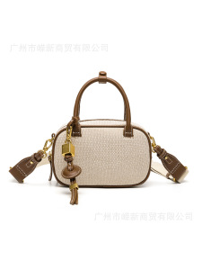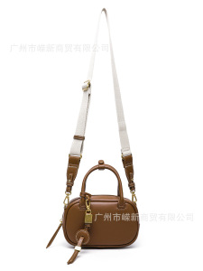 2025新款小众复古撞色手拎小包包洋气斜挎帆布小方包单肩保龄球包