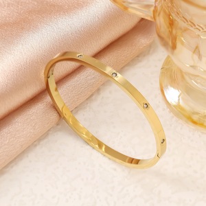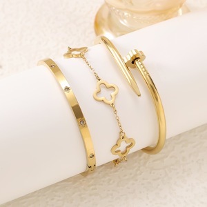 跨境不锈钢金色四叶草手镯套装 钉子手镯 镶钻手镯 镂空手链现货