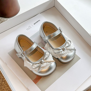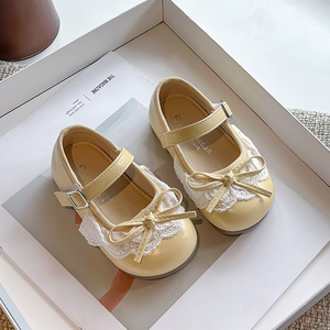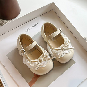 蕾丝边蝴蝶结皮鞋2025春秋新款韩版女童单鞋软底洛丽塔洋气公主鞋