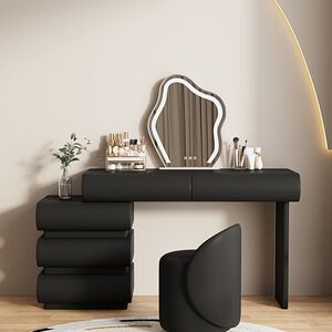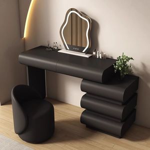 2025新款小户型黑色卧室梳妆台斗柜一体化妆台轻奢奶油风桌子