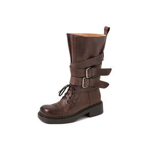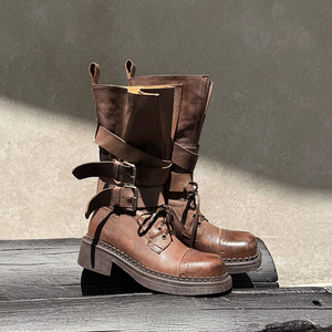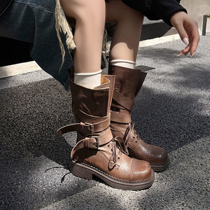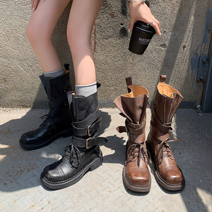 马丁靴2025秋季新款女靴粗跟中跟时装靴复古皮带扣中筒靴