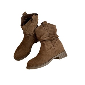 堆堆靴女2025春秋新款美拉德西部牛仔靴单靴中筒靴马丁靴