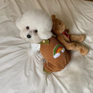 日韩ins风秋冬季狗狗衣服遇见彩虹灯芯绒背带裤中小型犬宠物衣服