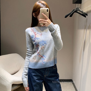 刺绣圆领针织毛衣 休闲设计感显瘦百搭舒适长袖上衣秋季 ZT62823