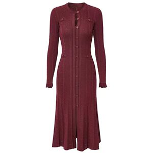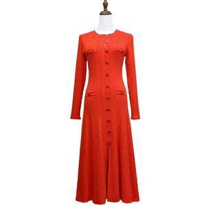 法式茶歇风2025秋冬长款针织连衣裙女长袖单排扣气质楼空修身长裙
