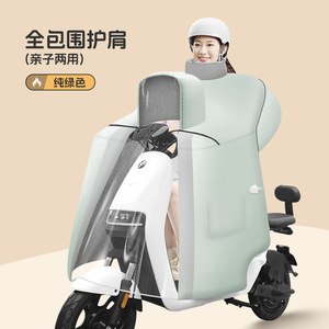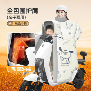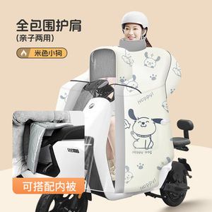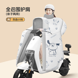 斗篷式电动车挡风被冬季保暖亲子儿童宝宝前座椅加大防风罩抗风