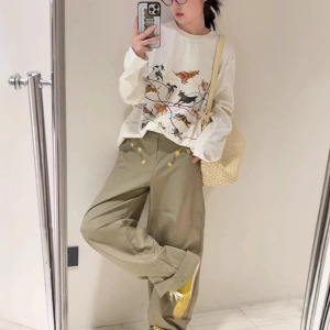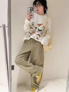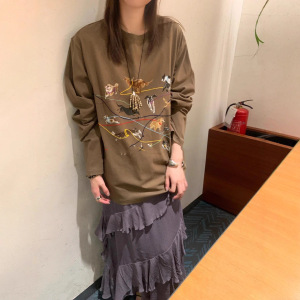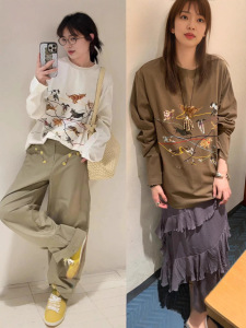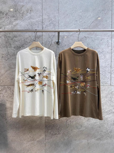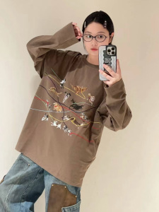 南油品质2025早秋新款动物线条刺绣设计感宽松长袖T恤男女同款