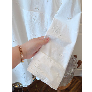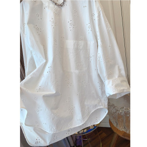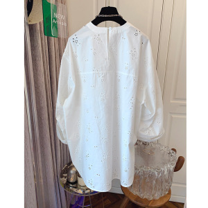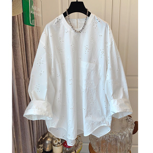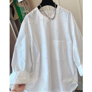 春秋高级感甜美减龄镂空圆领长袖衬衫上衣女装大码宽松衬衣潮流爆