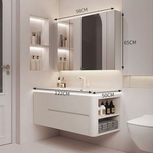 Hot升级氛围灯镜柜加大内径陶瓷盆+送货到家-下单时需向客服备注左右侧柜