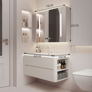 Hot美妆感应灯镜柜加大内径陶瓷盆+送货到家-80CM易清洁陶瓷一体盆+升降抽拉式水龙头