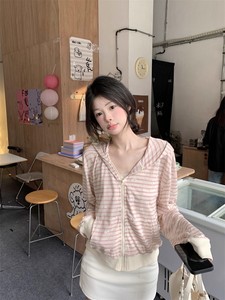 2025新款韩版百搭显瘦条纹防晒长袖连帽开衫罩衫宽松休闲外套女潮
