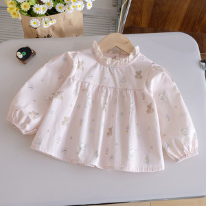 女童可爱衬衫25秋季新款卡通印花衬衣女宝宝可爱花边领棉质上衣潮
