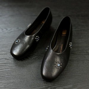 牛皮浅口单鞋女内增高单鞋秋新款真皮铆钉低帮平跟单鞋浅口单鞋女