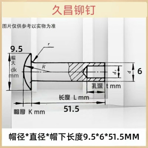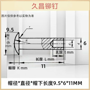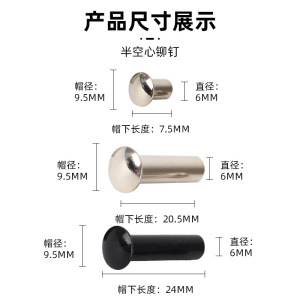 现货供应镀锌M6.0扁圆头9.5半空芯铆钉保证卷边不裂,尾空铆钉钉