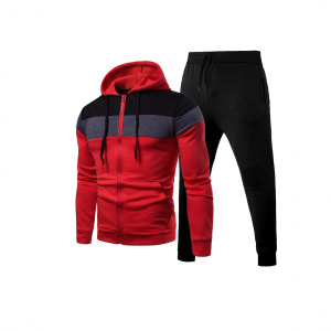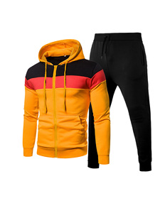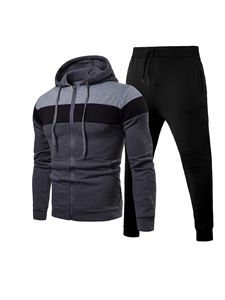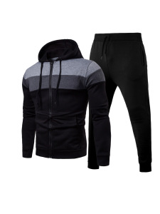新款春秋男士拼色拉链连帽卫衣休闲运动携带抽绳长裤男士运动套装