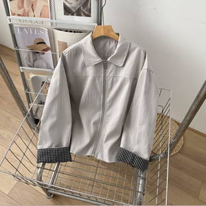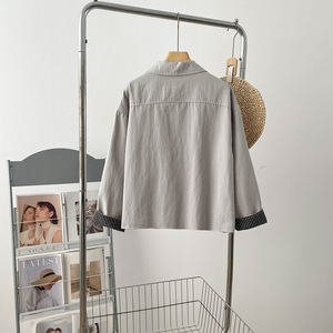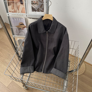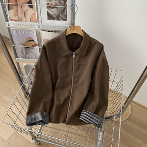 “甜酷拽姐”复古水洗质感翻领莱赛尔休闲宽松格子拼接显瘦女外套
