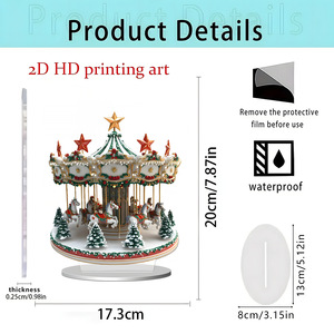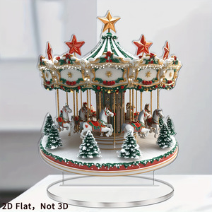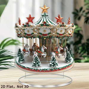 跨境新品圣诞旋转木马2D亚克力立牌圣诞节日互送礼物装饰家居摆件