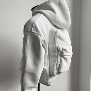 美式设计感立体书包开衫卫衣男士春秋季新款短宽boxy运动连帽外套