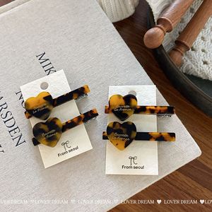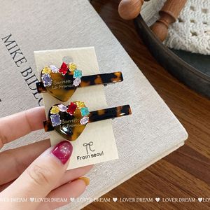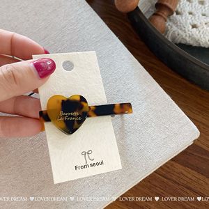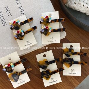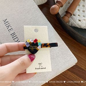 韩国新款豹纹爱心水钻鸭嘴夹发夹 法式复古时尚刘海夹侧边夹发饰
