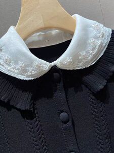 独特漂亮减龄上衣2025早秋新款气质钉珠娃娃领百搭撞色针织开衫女