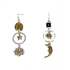 复古不对称太阳花耳环女重工异域风长款耳坠耳钉轻奢高级感耳饰