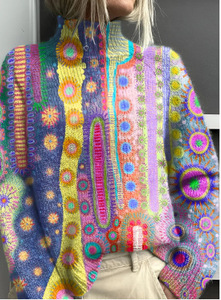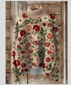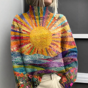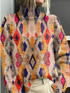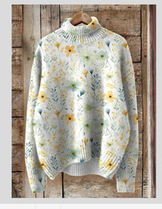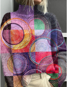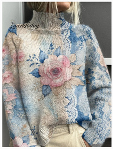 2025秋冬新款日韩休闲女式毛衣数码印花宽松半高领欧美外销