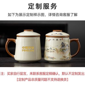 汝窑陶瓷办公杯礼盒大容量泡茶杯茶水分离马克水杯送领导客户logo