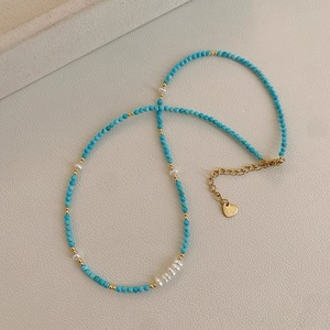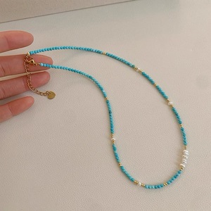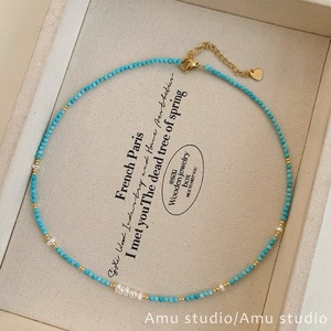 新中式天然蓝绿松石串珠项链女2025爆款轻奢小众珍珠高级感简约锁