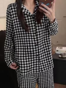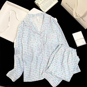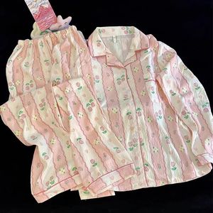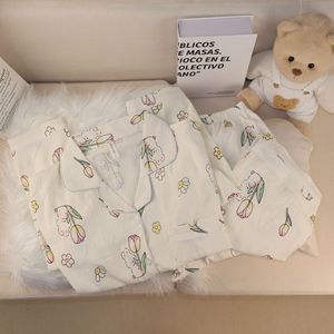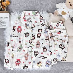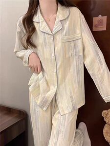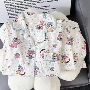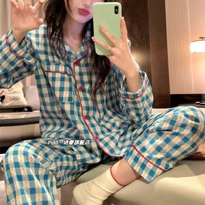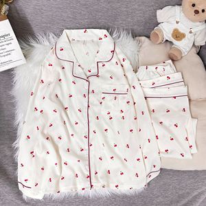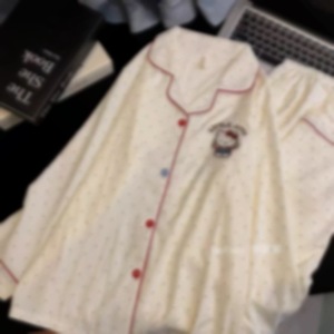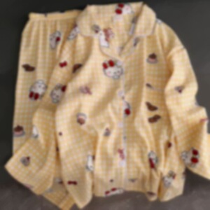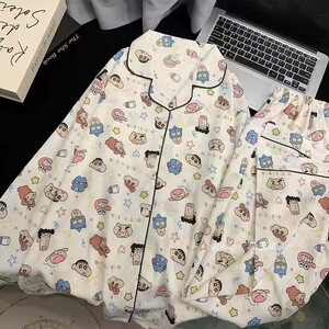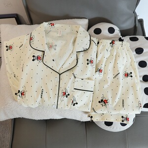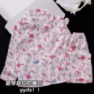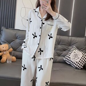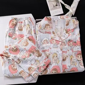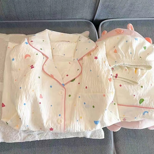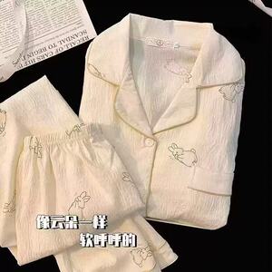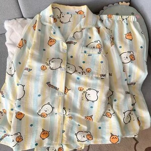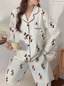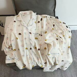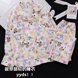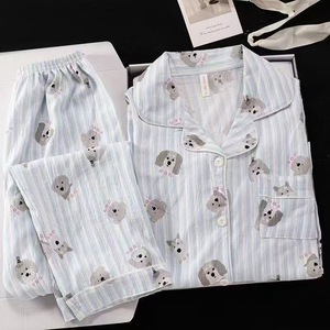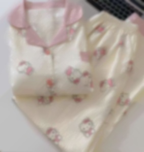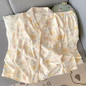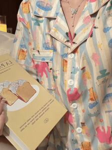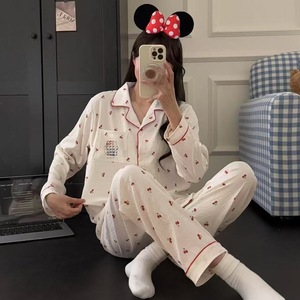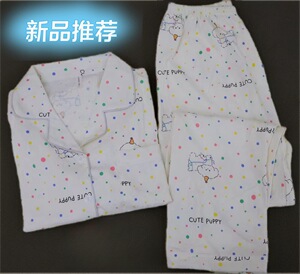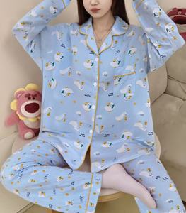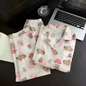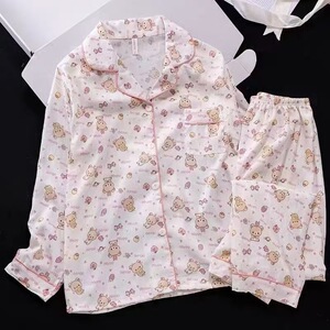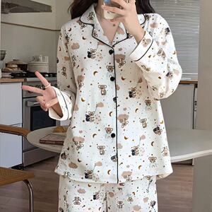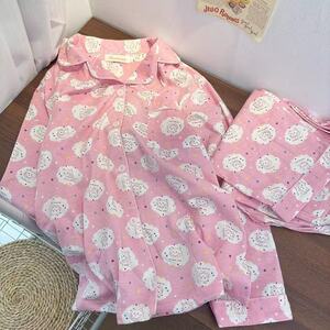日系卡通圆点小猫云朵棉睡衣女士长袖长裤翻领开衫开衫直播家居服