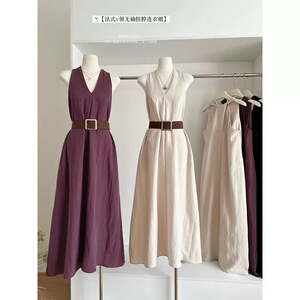 网红爆款高级洋气轻奢气质时尚v领连衣裙长裙夏季