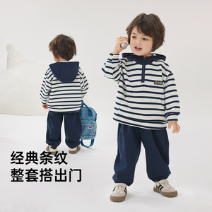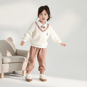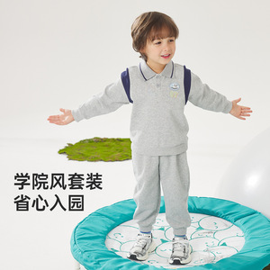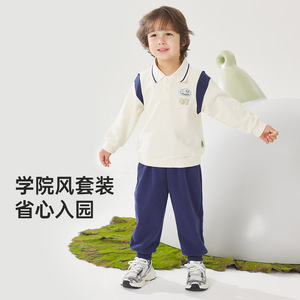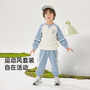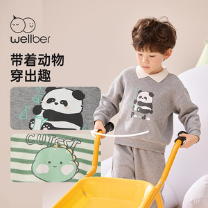 威尔贝鲁儿童套装25年新款春秋两件套长袖长裤休闲风假两件套装棉