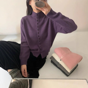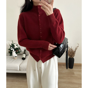 韩系2025单排扣针织开衫女秋季新款立领休闲外贸新款纯色开衫外套