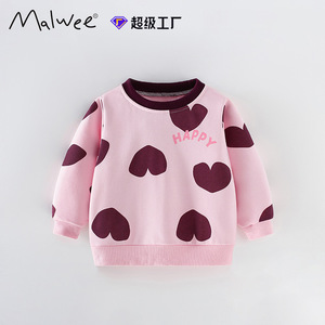 跨境malwee秋装童装卫衣秋冬新款欧美中小童圆领长袖可爱印花上衣