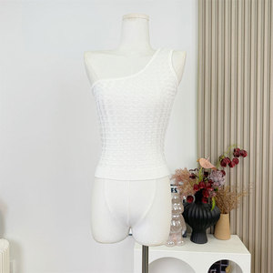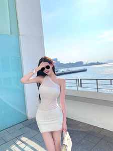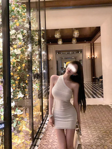 Chill巧儿【重工绞花】羊毛混纺纯欲斜肩镂空针织背心包臀连衣裙