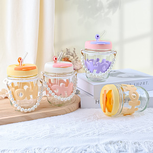 简约珍珠吸管杯家用便携玻璃杯子透明带盖咖啡杯女生伴手礼马克杯